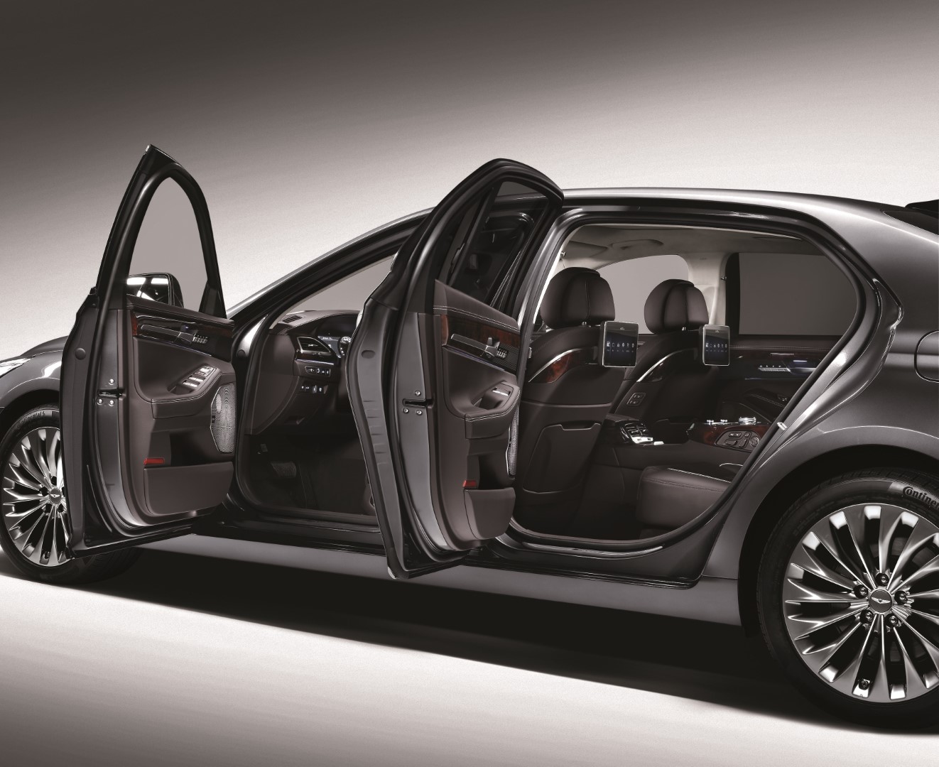 Un vistazo rápido a este Genesis basta para advertir que es algo especial. Aquí la elegancia y sofisticación pasan a otro nivel, y quizá nos adentramos en terreno Rolls-Royce. Pocos modelos de autos han logrado incorporar una parrilla tan grande con éxito. La del G90 en forma de escudo no repele, como algunas veces nos ha sucedido con modelos de Lexus. Su “plasticidad” se ve desafiada por finos faros delanteros que destacan desde cualquier ángulo, y que extienden su apariencia a la parte posterior de los guardabarros delanteros. Las luces traseras también son especialmente llamativas, junto a acentos más sutiles como las salidas de escape trapezoidales o las pinzas de frenos de color bronce.