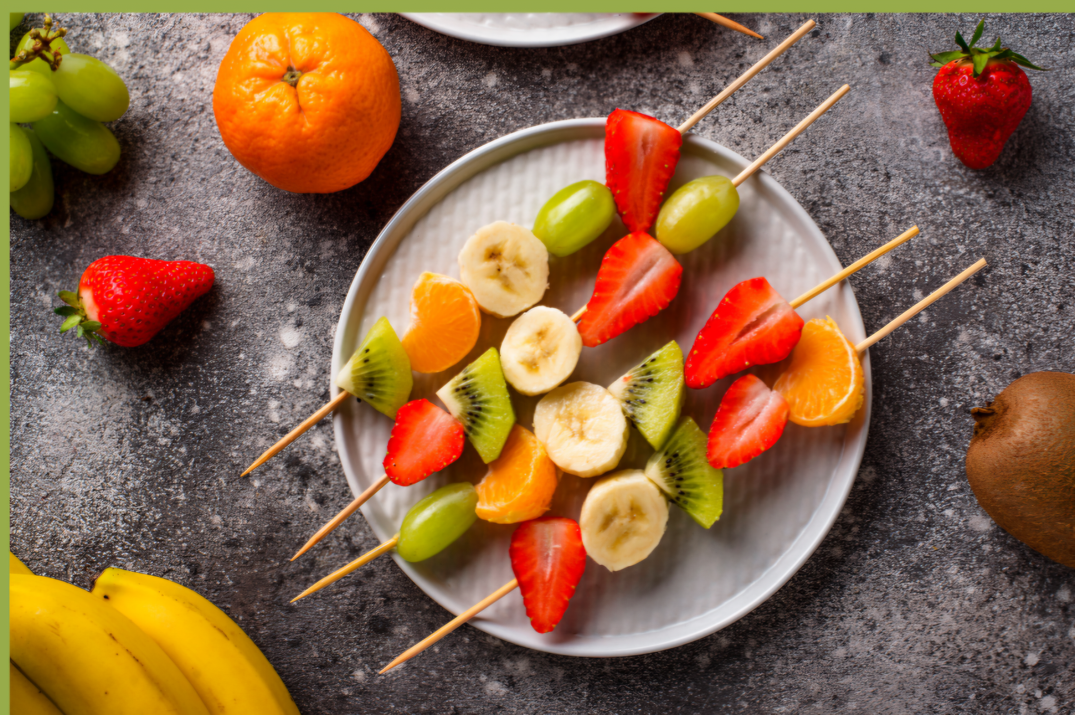 * 2 tazas de frutas (fresas, arándanos, plátano)