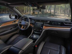 La suspensión adaptativa permite una altura de marcha elevada, con distancia máxima al suelo de 10,9 pulgadas. La batería híbrida está sellada, por lo que el Grand Cherokee 4xe puede atravesar hasta 60 cm de agua.