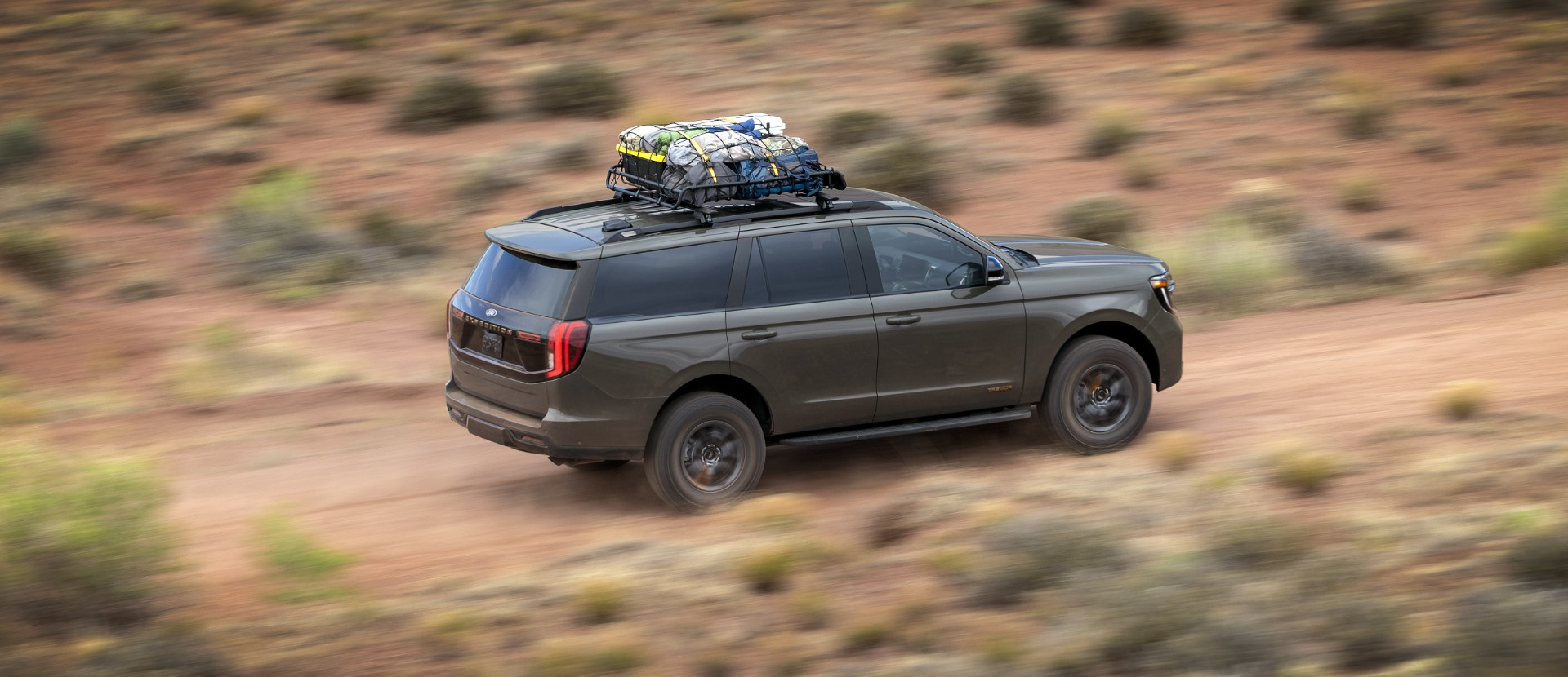 robustez visual incorporando barras de techo, dos ganchos de remolque, neumáticos todoterreno y una mayor altura libre al suelo, lo que da como resultado un aspecto ligeramente más belicoso que el de la Expedition regular.