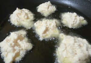 - Haga las tortitas y fríalas por ambos lados en el aceite bien caliente, hasta que doren.